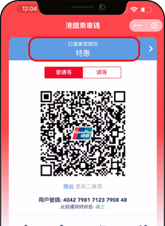 在港鐵乘車碼服務頁面,點擊「已選車票類別」,選擇合適的車票類別