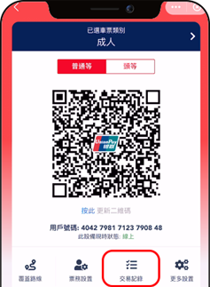 注意:港鐵乘車碼僅適用於香港地鐵,若乘搭巴士或其他交通工具,請點選「乘車碼」使用服務。